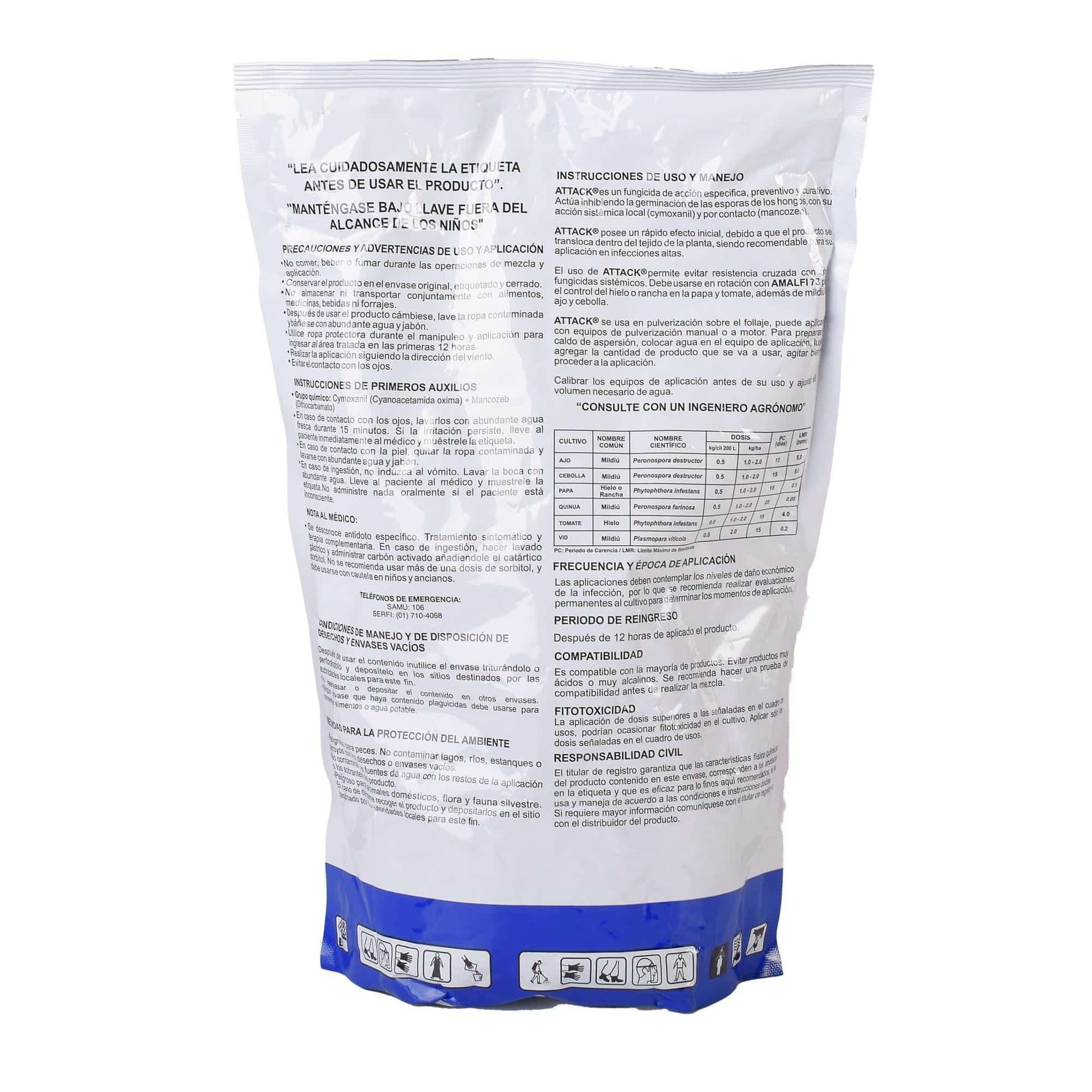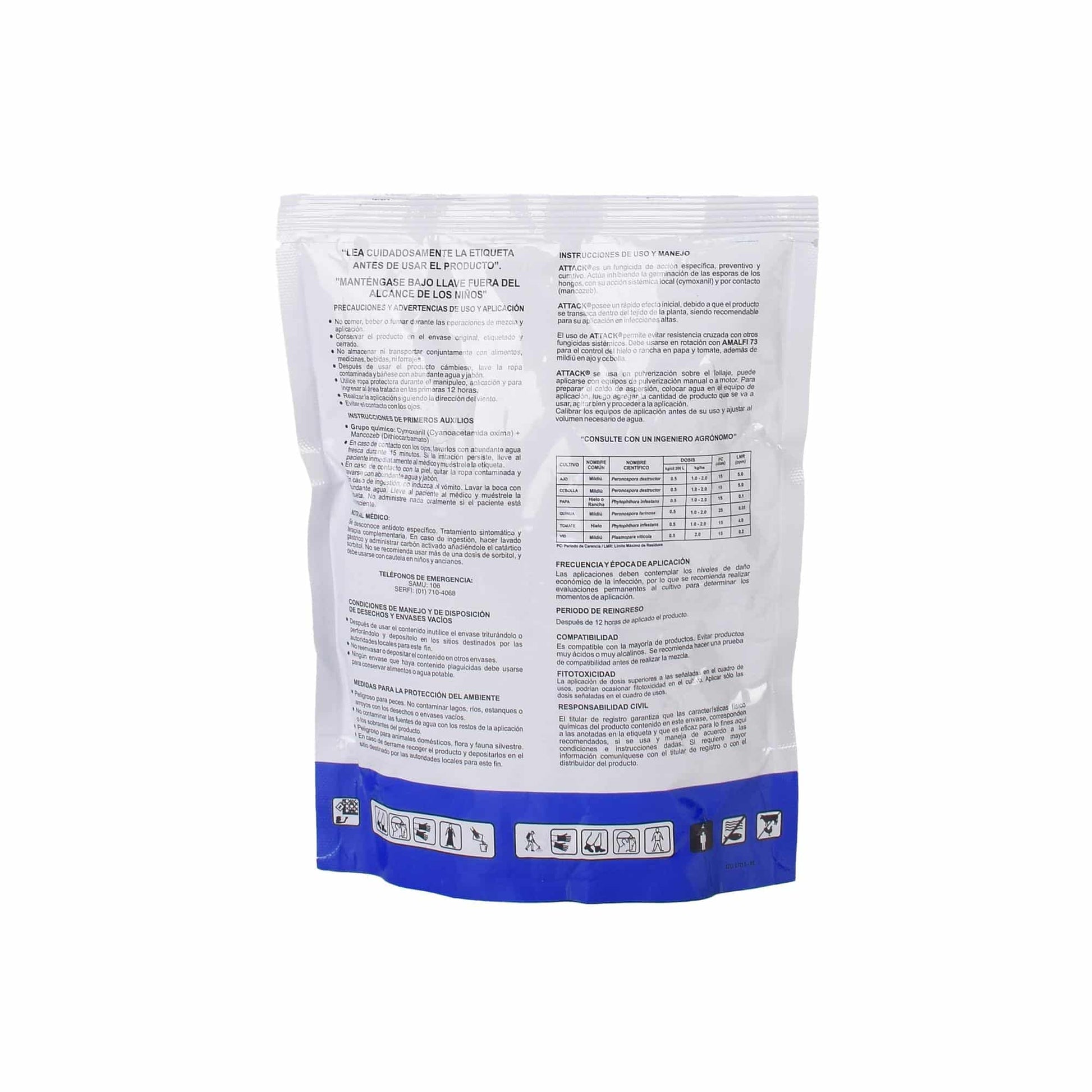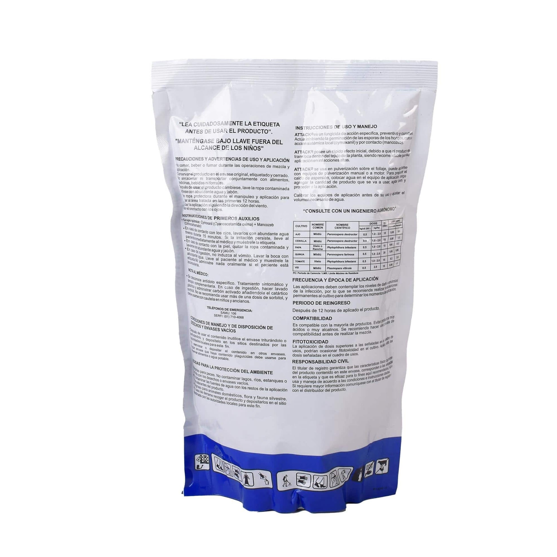 Fungicida de acción específica, preventiva y curativa. Actúa inhibiendo la germinación de las esporas de los hongos, con su acción sistémica local (cymoxanil) y por contacto (mancozeb).