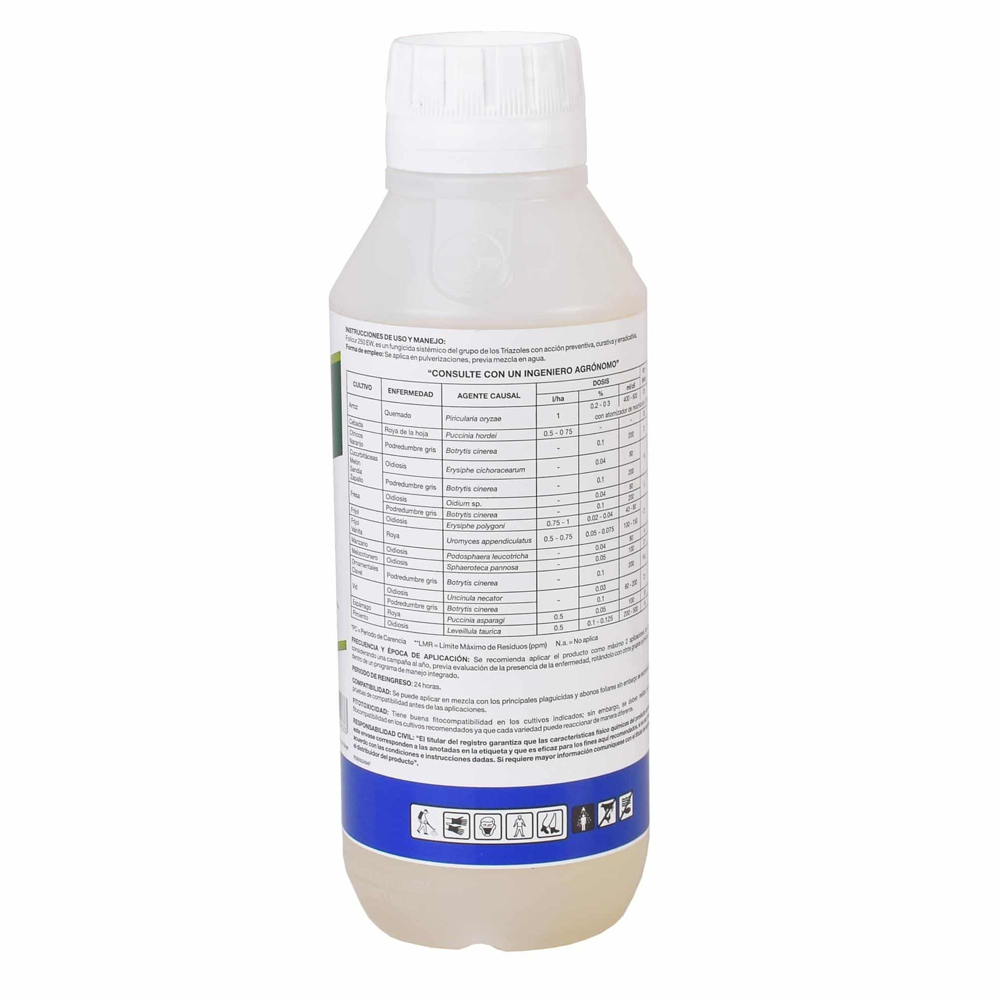 Fungicida sistémico de amplio espectro, muy eficiente para el control de Oidium, Roya, Cercospoora, Botritis, Alternaria, Monilia, Cercospora, Piricularia, Helminthosporium en espárrago, manzano, vid, leguminosas, cucurbitáceas, ajo, cebolla, tomate, arroz y cebada.
