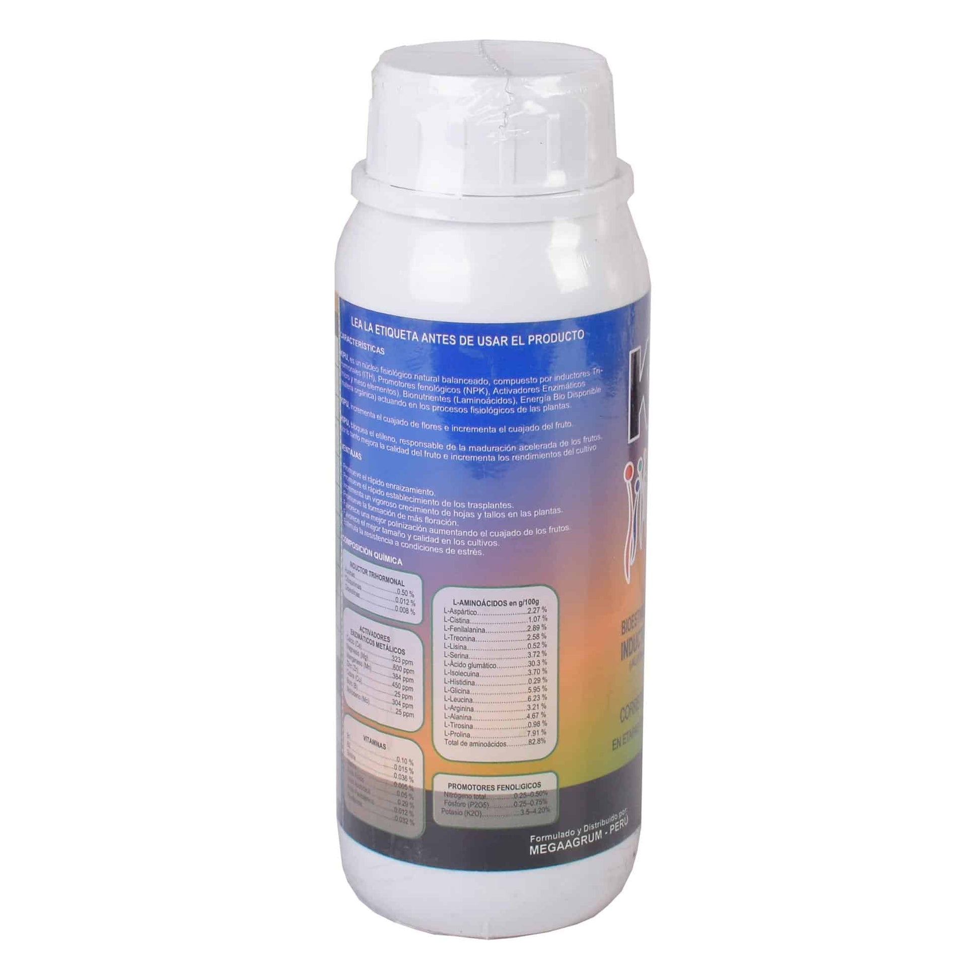 Es un núcleo fisiológico natural balanceado, compuesto por inductores Tri-Hormonales (ITH), Promotores fenológicos (NPK), Activadores Enzimáticos (micro y meso elementos), Bionutrientes (Laminoácidos), Energía Bio Disponible (materia orgánica) actuando en los procesos fisiológicos de las plantas.