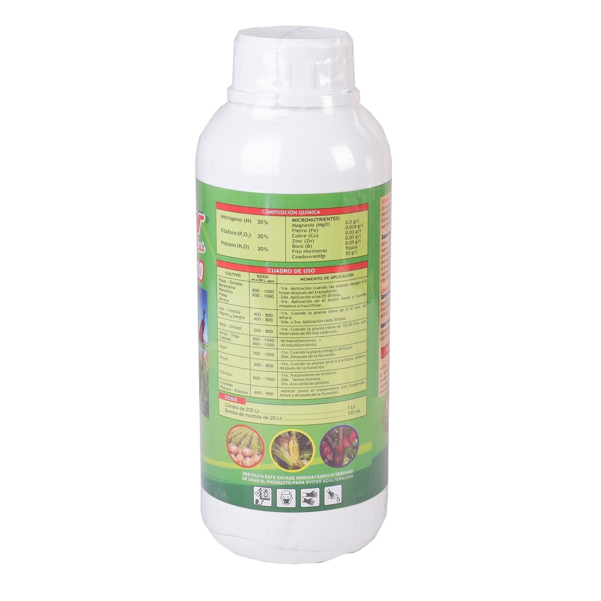 Fertilizante foliar que contiene N-P-K, micronutrientes quelatizados, aminoácidos y extracto de algas marinas. Por su...